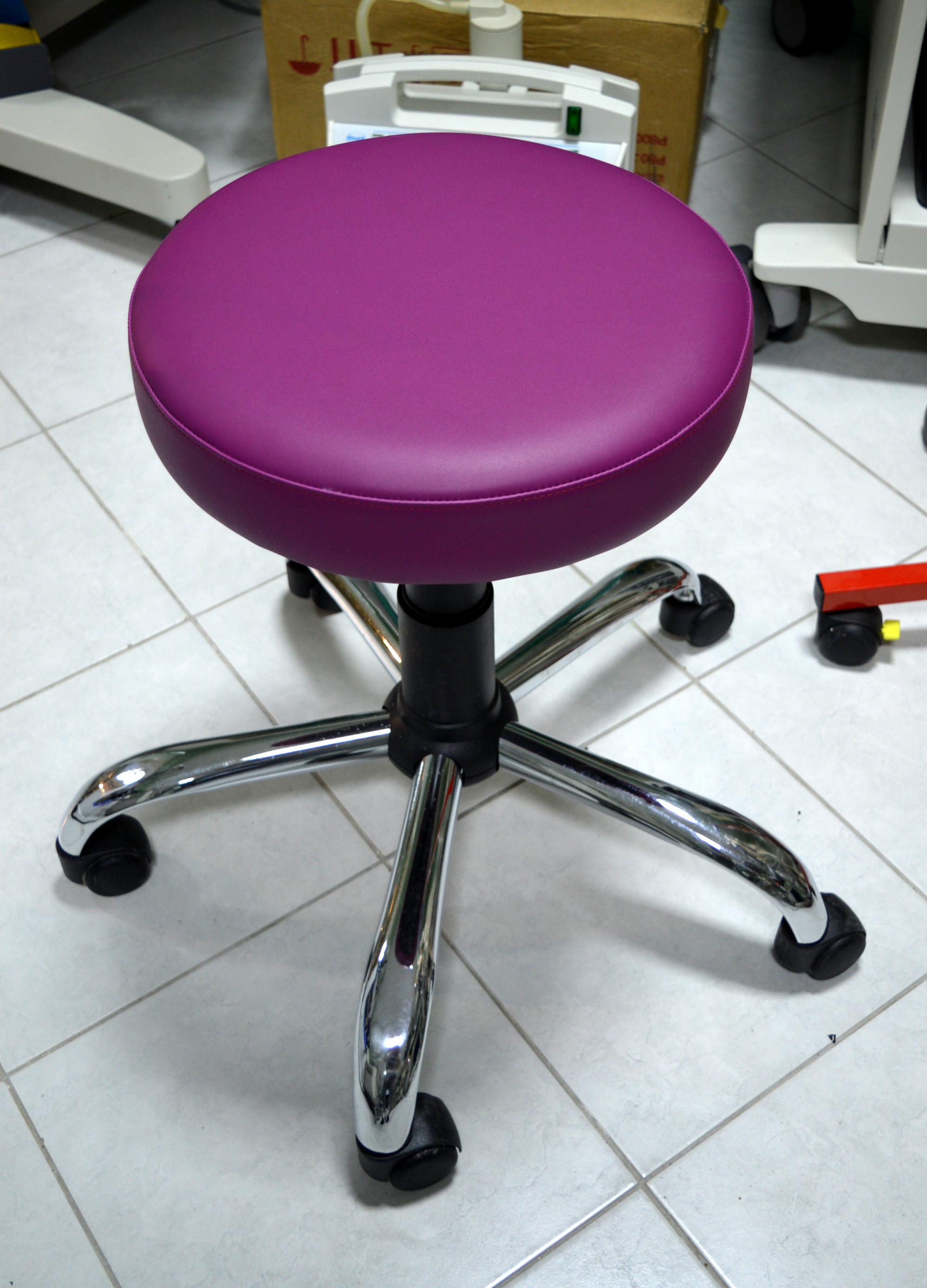 Hidraulična stolica okretaljka za pacijenta sa točkićima ili stopama u bojama po izboru.